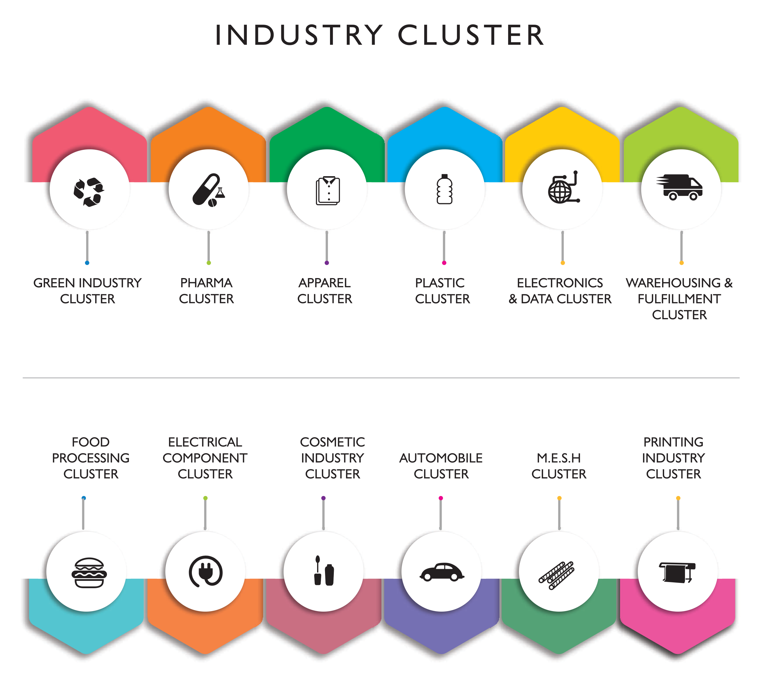Since decades, Industry Clusters have served as catalyst for economic growth. At Renaissance, we understand the benefits of companies from the similar industries coming together. It helps them reduce the cost of production & transportation, finding new workforce and new business. We believe companies with similar interests, competencies, and requirements can now gather together.